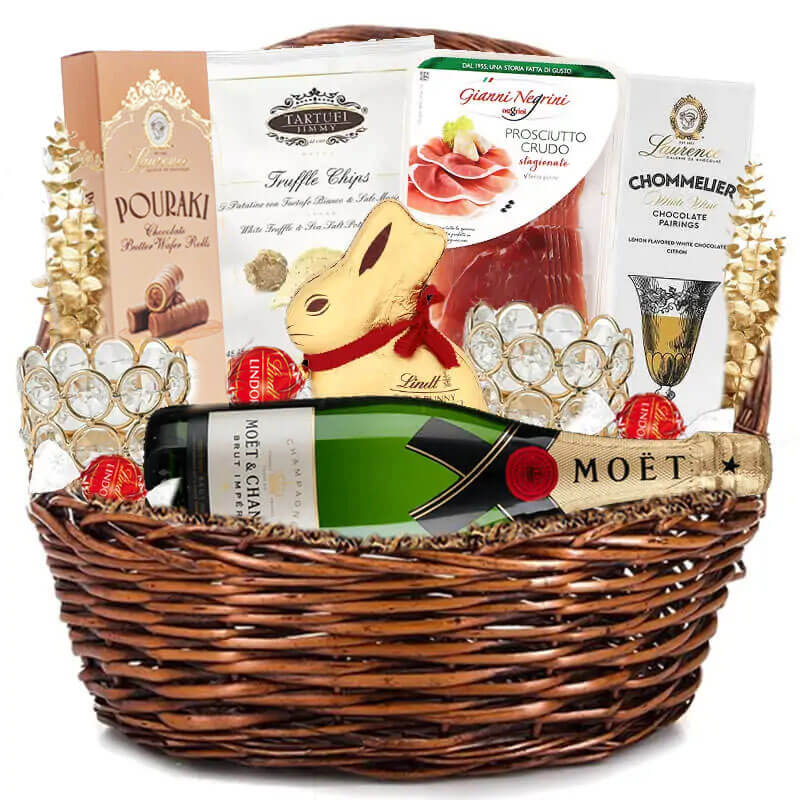 Луксозна Подаръчна Kошница за Великден с шампанско и селекция деликатеси